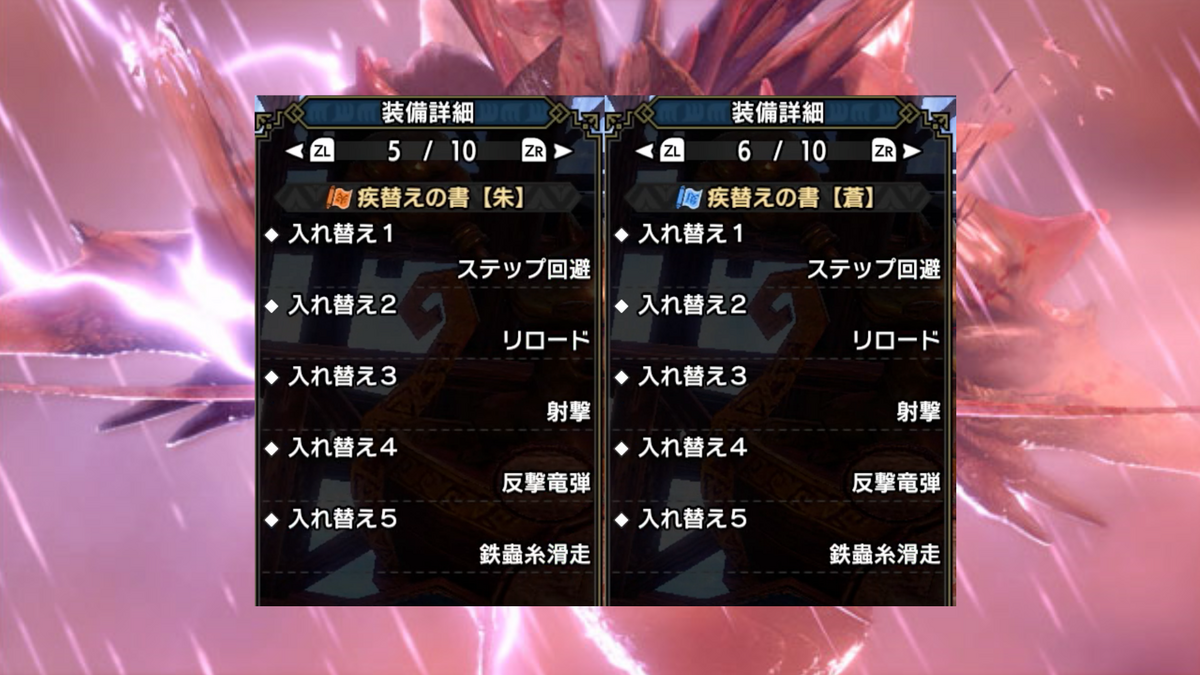 1つ目は、ステップ回避+回避距離Lv3の組み合わせがかなり立ち回りやすいので、個人的にはステップ回避を推します。