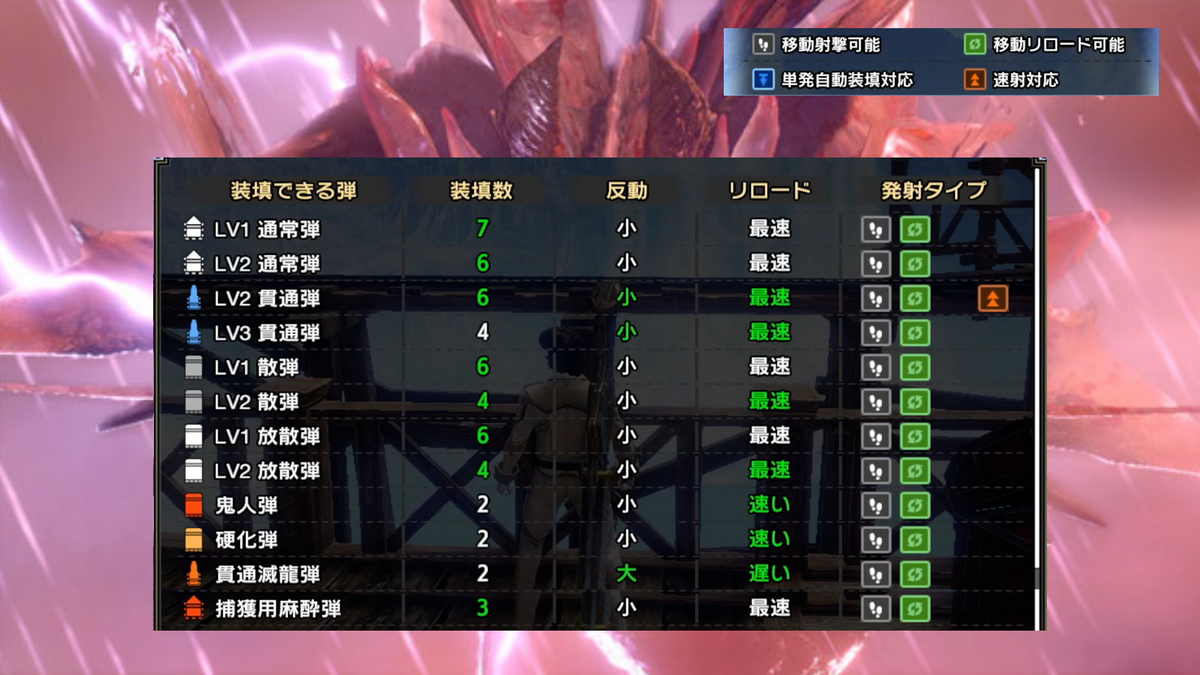 装填可能な弾の種類はこんな感じです。