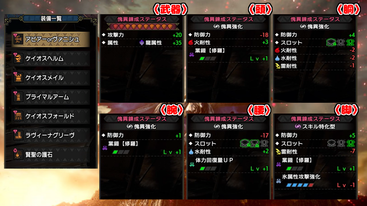 氷属性強化は、脚のラヴィーナ防具のおまけですね。